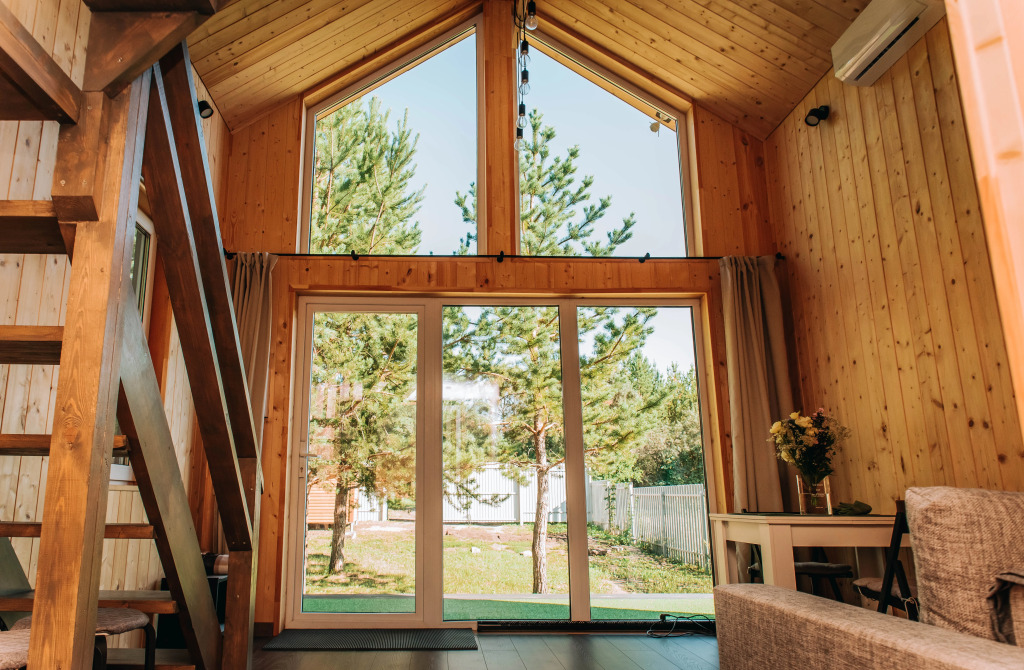 Гостей ждёт баня на дровах, настольные игры, панорамные окна, терраса и двор с мангальной зоной.