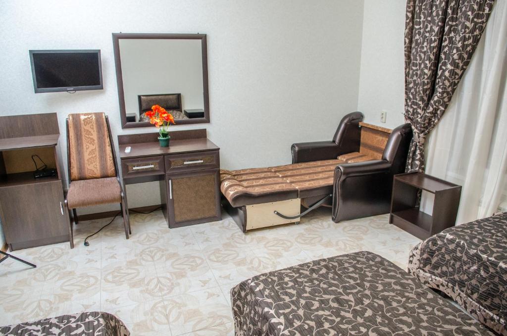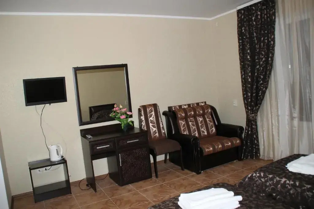 В номере вы найдёте телевизор. Оснащение зависит от выбранной категории номера.