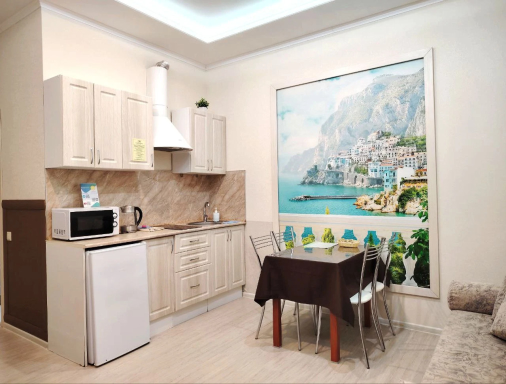 Студия полностью укомплектована бытовой техникой для комфортного проживания: имеется плита, кондиционер, набор посуды, холодильник, утюг, гладильная доска, стиральная машина, фен, высокоскоростной интернет Wi-Fi, ТВ, гостям предоставляются косметические наборы и тапочки. Гости с автомобилем могут воспользоваться парковочными местами.