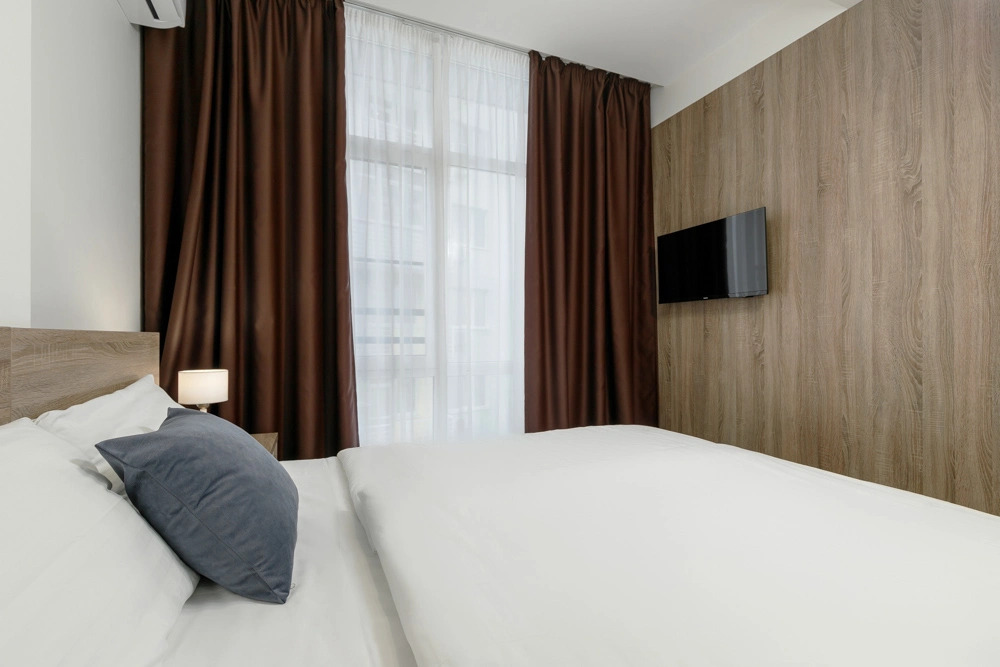 Номер уютно обставлен и оснащён необходимым, чтобы отдохнуть после долгого и насыщенного дня. Имеются телевизор. Перечисленные услуги есть не во всех номерах.