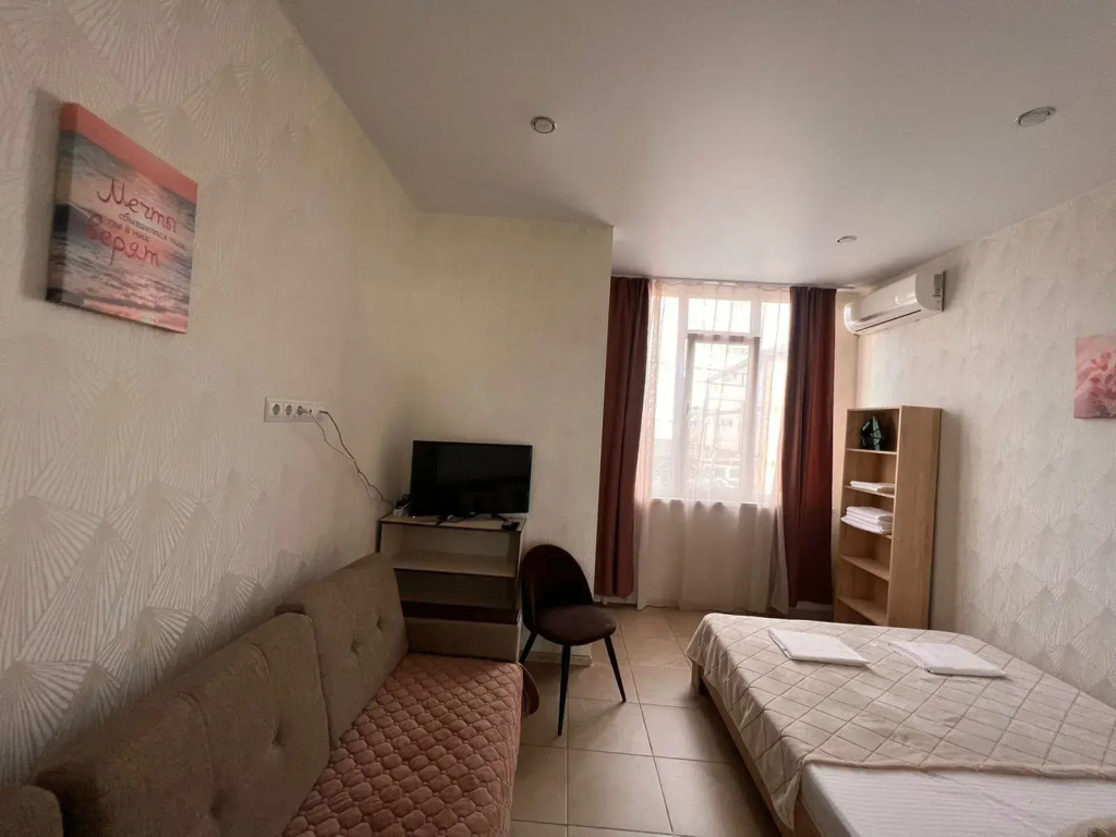 В номере вы найдёте телевизор. Оснащение зависит от выбранной категории номера.