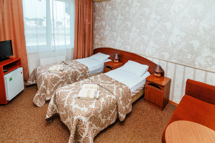 Номер уютно обставлен и оснащён необходимым, чтобы отдохнуть после долгого и насыщенного дня. Имеются телевизор. Перечисленные услуги есть не во всех номерах.