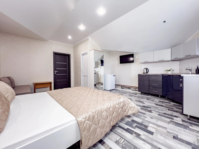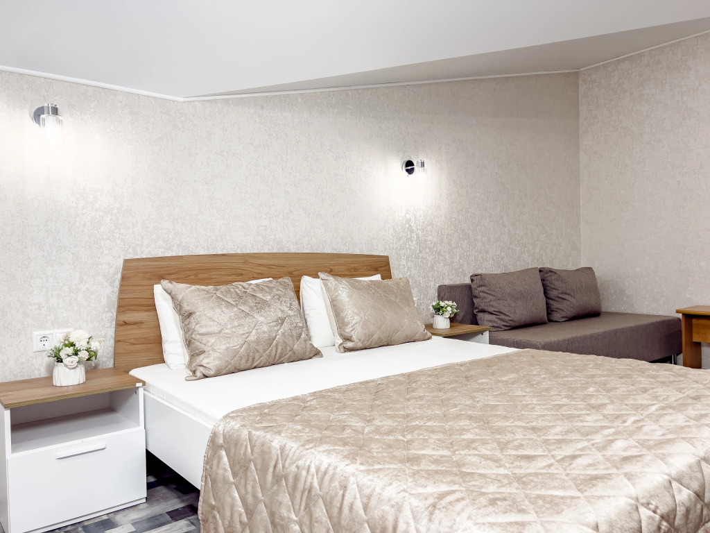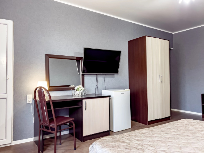 В номере есть сплит-система, холодильник, телевизор. Оснащение зависит от выбранной категории номера.