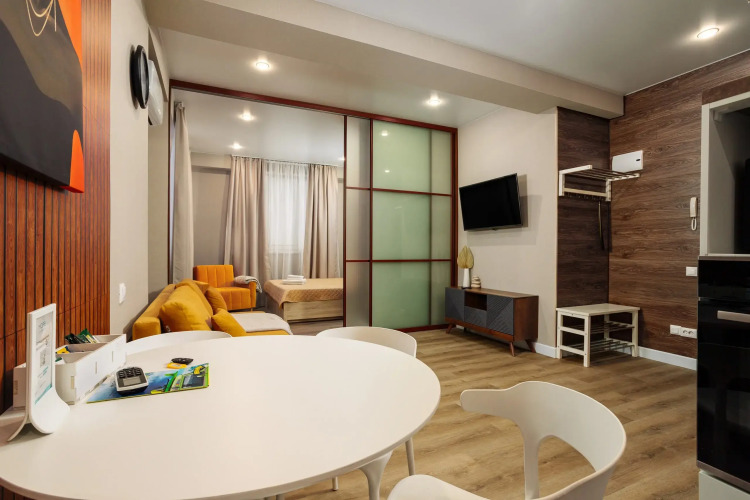 Апартаменты находятся на 1 этаже. Апартаменты оснащены и обставлены необходимым для проживания. В апартаментах есть бесплатный Wi-Fi. Допускается размещение с питомцами за дополнительную плату. Сотрудники апартаментов поддержат беседу на русском.
