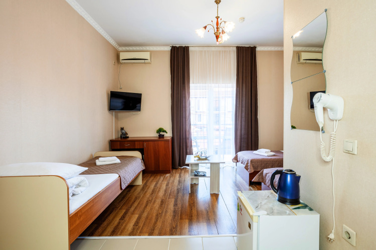 Все номера с удобствами. На каждом этаже в общем доступе: микроволновая печь, кулер с питьевой водой, гладильная доска, утюг.