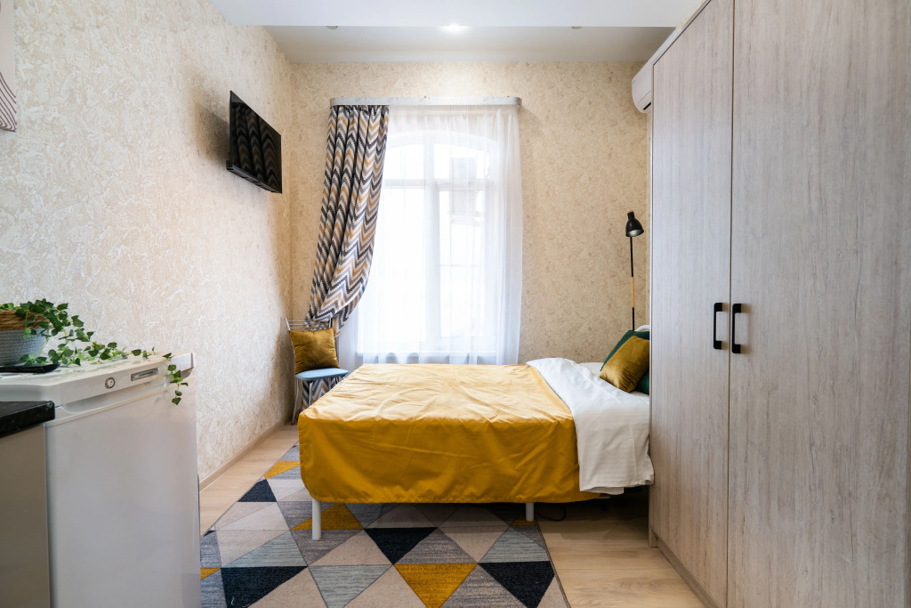 Номер уютно обставлен и оснащён необходимым, чтобы отдохнуть после долгого и насыщенного дня. Имеются телевизор. Перечисленные услуги есть не во всех номерах.
