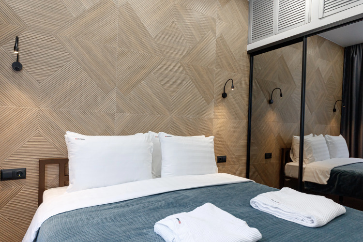 Номер уютно обставлен и оснащён необходимым, чтобы отдохнуть после долгого и насыщенного дня. Имеются телевизор. Перечисленные услуги есть не во всех номерах.