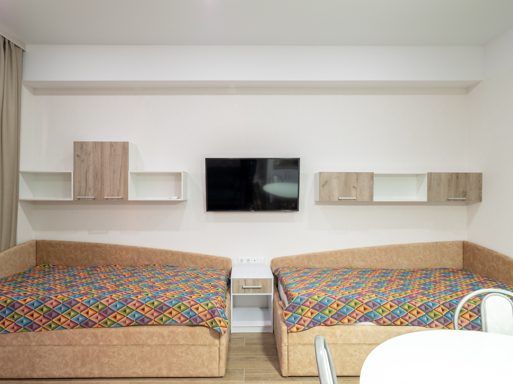 Чтобы вы могли отдохнуть после долгого дня, в номере есть телевизор. Оснащение зависит от выбранной категории номера.