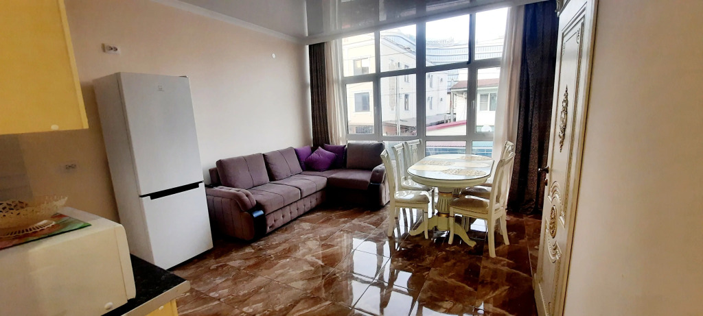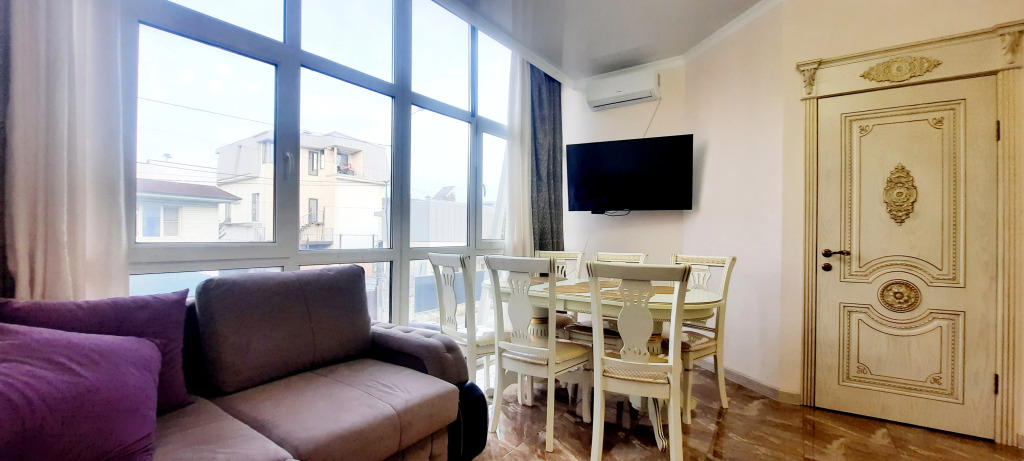 Двухкомнатные апартаменты вмещают до 6 человек. В апартаментах: 3 кондиционера, тёплый пол, панорамные окна во всю стену. Гостям доступны: постельное бельё и полотенца, телевизор, кондиционер, Wi-Fi, гладильные принадлежности.