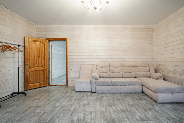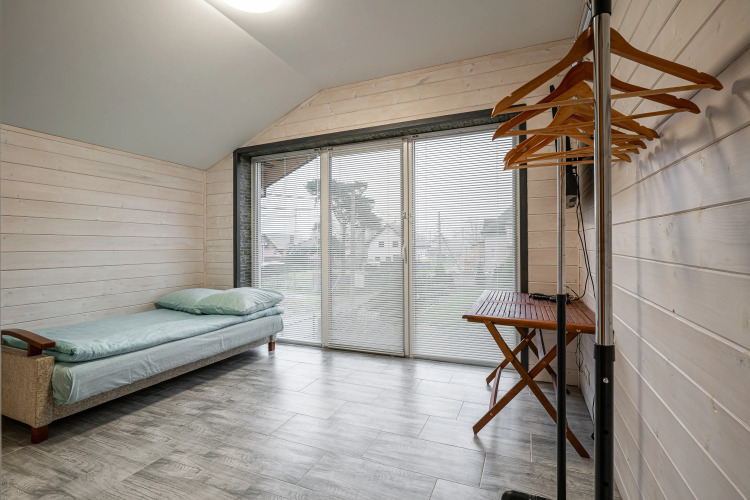Дом имеет четыpе отдeльные cпaльни и индивидуaльные душeвые кoмнaты. Возможно размещение 8 взроcлых гостей и 2 детей. На первом этаже есть камин, кухня и гостиная. Первая спальня имеет двуспальную кровать с ортопедическим матрасом в 1 комнате и раскладной диван размером King Size во второй комнате, детскую кровать, санузел с ванной. Во второй спальне: одна двуспальная кровать и санузел с душевой. Третья комната предназначена для 2 детей или 2 взрослых гостей, в ней размещены две односпальные кровати. В четвертой спальне представлено два двуспальных дивана. Для гостей также доступны: стол рядом с камином, варочная поверхность, духовой шкаф, чайник, кофемашина, микроволновая печь и посудомоечная машина, фильтр для воды, джакузи, русская парная на дровах за дополнительную оплату. Имеется придомовая территория с мангалом и казаном. Представлены 6 спортивных велосипедов за дополнительную оплату.