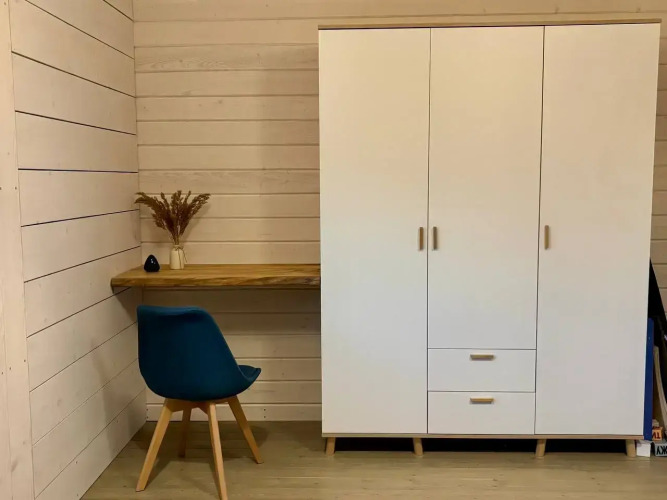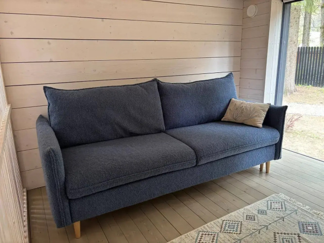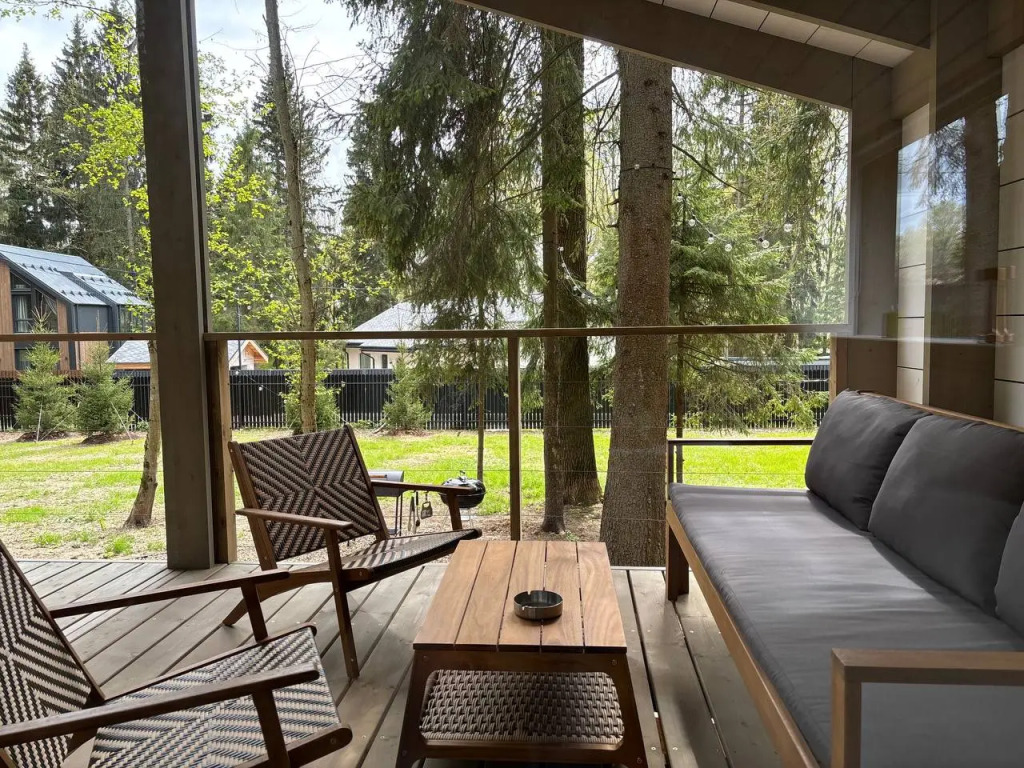 Дом рассчитан на 6 человек. Внутри: три спальные комнаты, две двуспальные кровати, один раскладной диван, кухня-гостиная с камином, санузел с ванной и тёплым полом, терраса с мебелью, мангальная зона и костровая чаша. Из техники: микроволновка, холодильник, духовой шкаф, посудомоечная машина, стиральная машина, кофемашины Nespresso и Delonghi, фильтр для воды, проектор, Wi-Fi, проигрыватель винила, колонка Marshall. Предоставляется комплект посуды, постельное бельё, полотенца, гигиенические принадлежности. На участке: гамак, уличная детская кухня, парковка на 2 автомобиля.