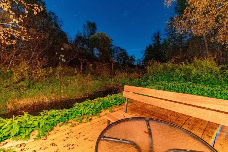 На втором этаже расположена двуспальная кровать. В доме тёплые полы и дровяной камин. Имеется набор продуктов: соль, перец, сахар, чай, кофе, подсолнечное масло. Гостям доступны полотенца, постельное бельё, гель для душа, мыло, шампунь, фен. Столовая посуда: тарелки, салатники, сковорода, кастрюли, приборы, бокалы, кружки.