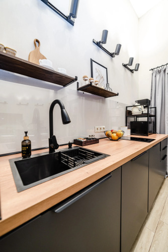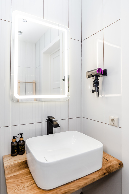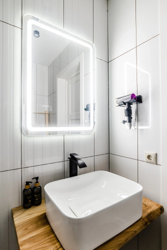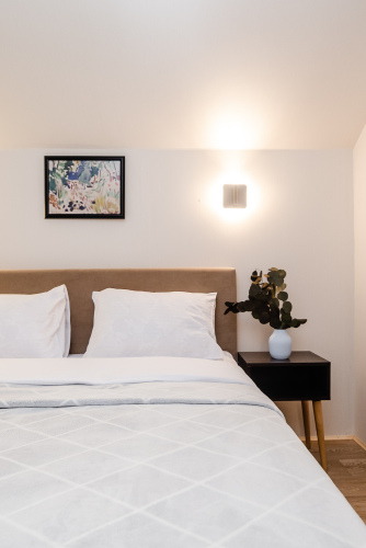 В распоряжении гостей — полотенца, постельное бельё, гель для душа, мыло, шампунь, фен. Для маленьких гостей предусмотрены детская кровать-манеж и стульчик для кормления.