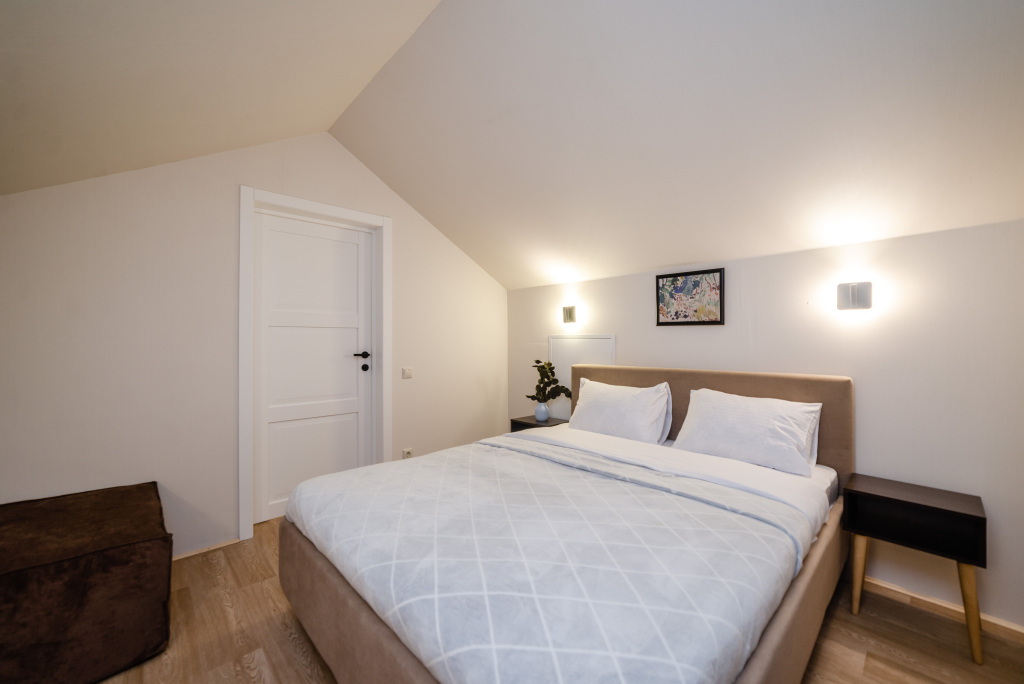 На втором этаже находится третья спальня с двуспальной и односпальной кроватями.