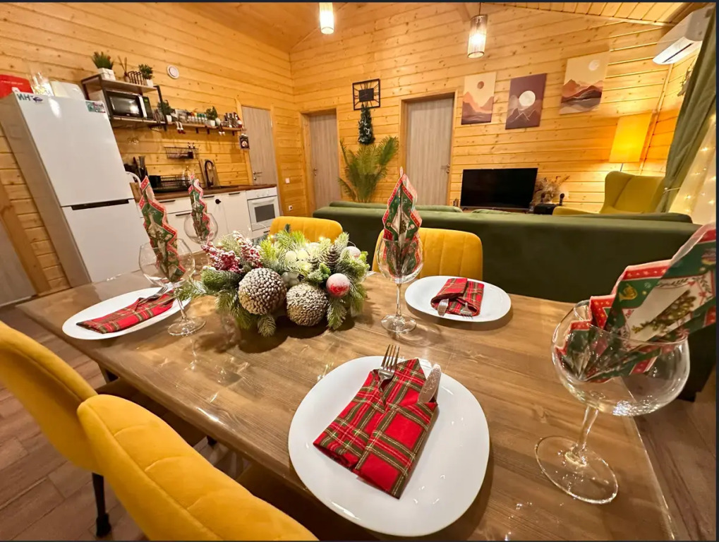 Для бронирования доступен дом с 3 спальнями, террасой и просторной гостиной-кухней, до 8 спальных мест. На территории дома есть: оборудованная зона отдыха с мангалом и костровой чашей. Для комфортного отдыха и жизни в доме есть: Wi-Fi, телевизор со Smart TV с фильмами и сериалами, кухня со всем необходимым, микроволновая печь, холодильник, плита, посуда и обеденный стол, двуспальные кровати и диван.
