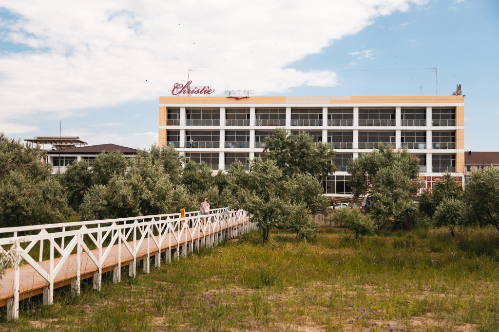 Отель «Christie Евпатория» располагается в посёлке Мирный в 30 км от г. Евпатория на косе между Чёрным морем и солёным озером Донузлав, которое славится своими целебными грязями. В 12 км, в бухте озера Донузлав, находится дельфинарий, где можно посмотреть представление или поплавать с дельфинами