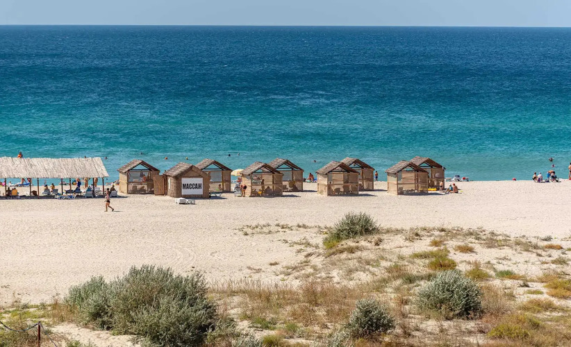 У отеля имеется собственный песчаный пляж с пологим входом в море, оборудованный лежаками и навесами. На пляже также есть детская площадка и надувная горка, площадки для пляжного футбола и волейбола, и качели прямо в море.