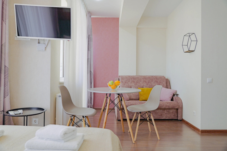 Номер уютно обставлен и оснащён необходимым, чтобы отдохнуть после долгого и насыщенного дня. Имеются телевизор. Оснащение зависит от выбранной категории номера.