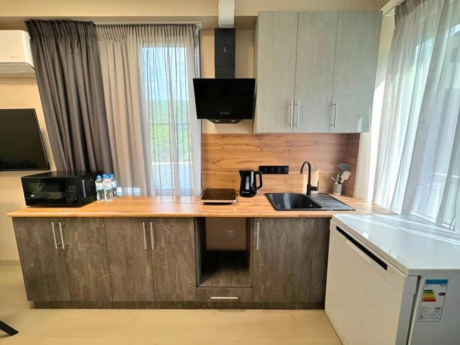 Квартира «Чайный Берег» находится в Дагомысе, вблизи центра города. Неподалёку: пляж Дагомыс с широкой пляжной линией и разнообразной инфраструктурой, эко-парк Солох-аул с чайными плантациями и различными развлечениями для детей и взрослых. Также вокруг есть базы отдыха и банные комплексы. В пешей доступности расположена остановка общественного транспорта. До железнодорожной станции и пляжа примерно 3 км.