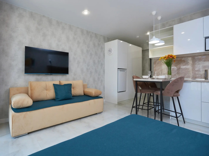 Подходящий вариант для большой компании: апартаменты «Квартира Семейная студия Rosa House в ЖК Каравелла Португалии» располагаются в Дагомысе. Эти апартаменты находятся неподалёку от центра города. Рядом с апартаментами можно прогуляться. Неподалёку: Центральный пляж Дагомыса, Пляж ОК Дагомыс и Пляж Уч-Дере.