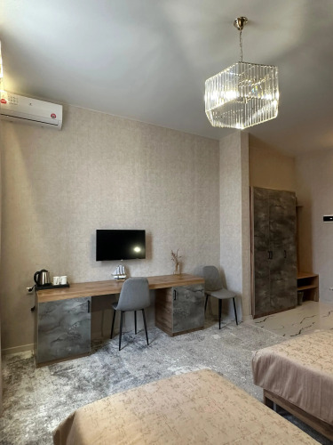 В номере вас будут ждать телевизор. Оснащение зависит от выбранной категории номера.