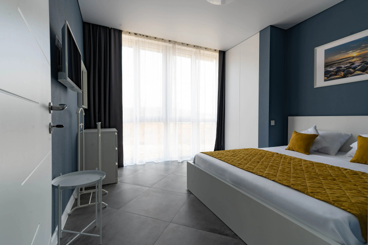 Номер обставлен и оснащён необходимым, чтобы отдохнуть после долгого и насыщенного дня. Имеются телевизор и халат. Перечисленные услуги есть не во всех номерах.