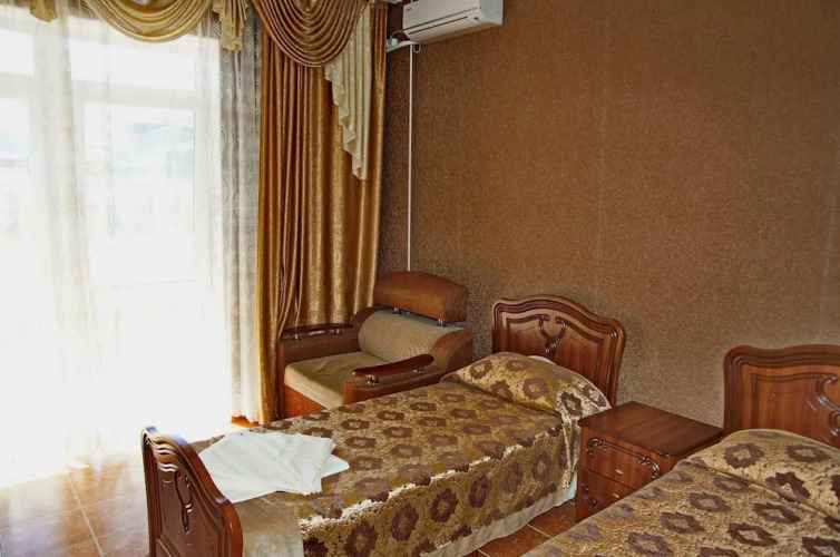 В номере вы найдёте душ и телевизор. Оснащение зависит от выбранной категории номера.