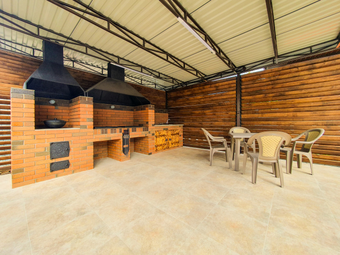 На территории: детская площадка, мангальная зона, индивидуальные беседки для каждого домика.