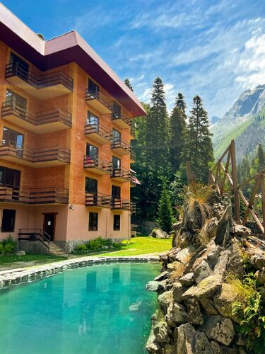 Подходящий вариант для бюджетного отдыха — отель «Отель Таулу» находится на Домбае. Этот отель расположен в центре города. Утром — выпейте кофе, наблюдая из окна за жизнью города. Рядом с отелем — Горнолыжный восьмикресельный подъемник Домбай-1, Маятниковая канатная дорога и Горнолыжный шестикресельный подъемник Домбай-2.