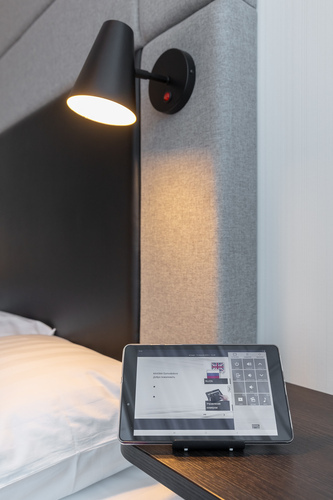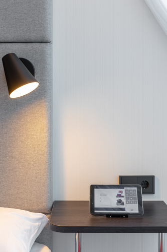 Уютный smart номер площадью 15 кв. м. Оформлен в светлой спокойной цветовой гамме. Гости могут управлять номером с помощью SMART планшета. Настраивается освещение, микроклимат, расположение штор, мультимедиа. В комнате все для путешественников: кровать королевских размеров King-size 200*200см, мягкий уголок со столиком, небольшое рабочее место. Для развлечения гостей есть телевизор LCD 43'' ULRA HD и мультимедийная система (ТВ и музыкальный контент). Мини-бар, сейф, кондиционер – в числе удобств