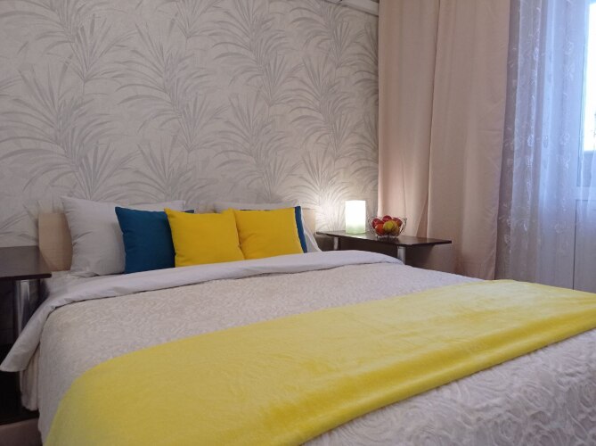 Гостям предоставляется двуспальная кровать с матрасом и постельным бельём, а также раскладное кресло. В квартире работает Wi-Fi. В числе гигиенических принадлежностей — зубная паста, тапочки, гель для душа, свежие полотенца и шампунь.