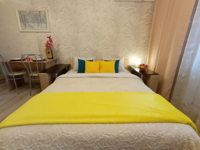 Для бронирования доступна квартира-студия с балконом. В распоряжении гостей — вся необходимая бытовая техника: стиральная машина, холодильник, фен, телевизор, утюг, микроволновая печь, чайник. Кухня полностью укомплектована и оборудована обеденной зоной. В наличии — чай, кофе, горячий шоколад и цикорий.