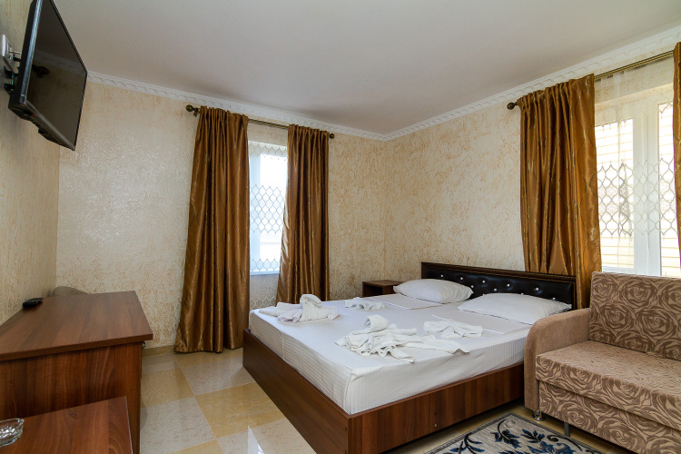 Номер уютно обставлен и оснащён необходимым, чтобы отдохнуть после долгого и насыщенного дня. Имеются телевизор и халат. Перечисленные услуги есть не во всех номерах.