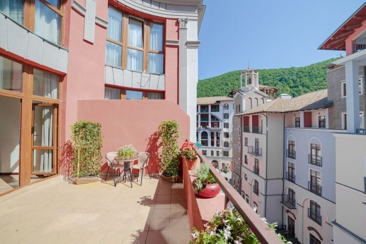 Апартаменты панорамой на горы. Открытый балкон. Спальня. Жить в Горах.