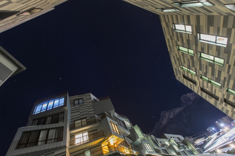 Въезд на лыжах на территорию отеля