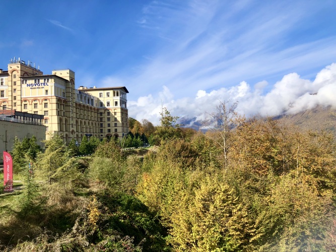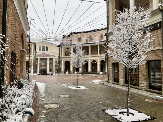 Въезд на лыжах на территорию отеля