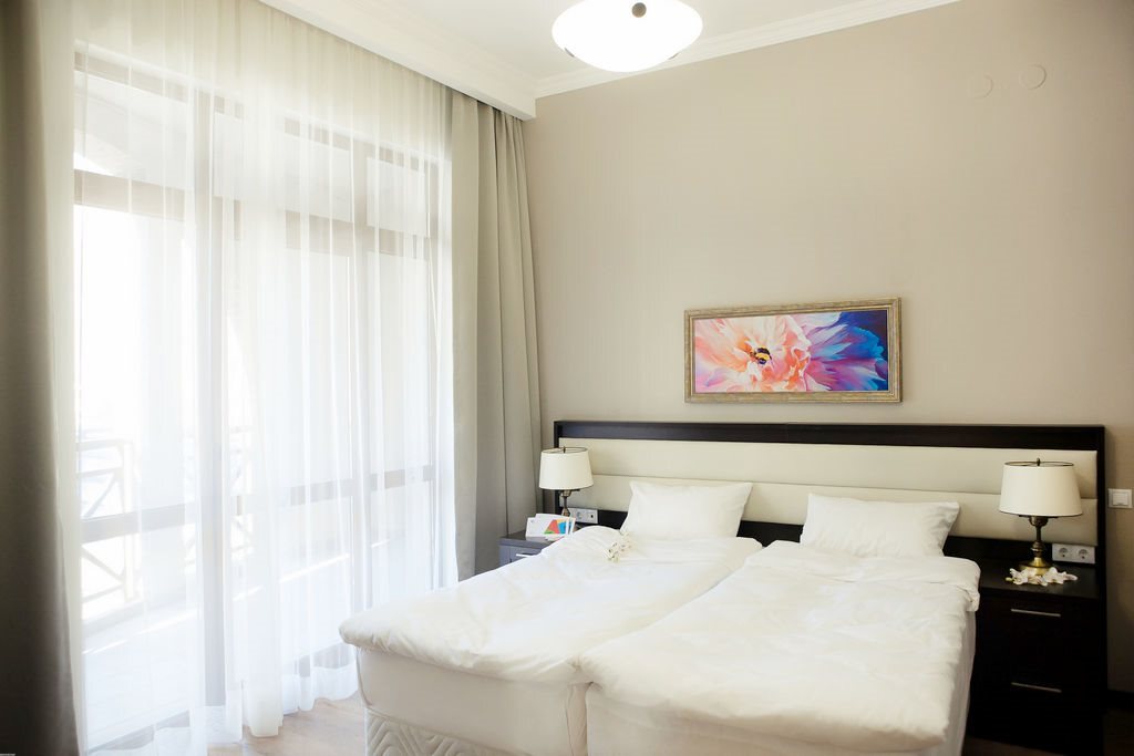 В номере вас будут ждать телевизор и тапочки. Оснащение зависит от выбранной категории номера.