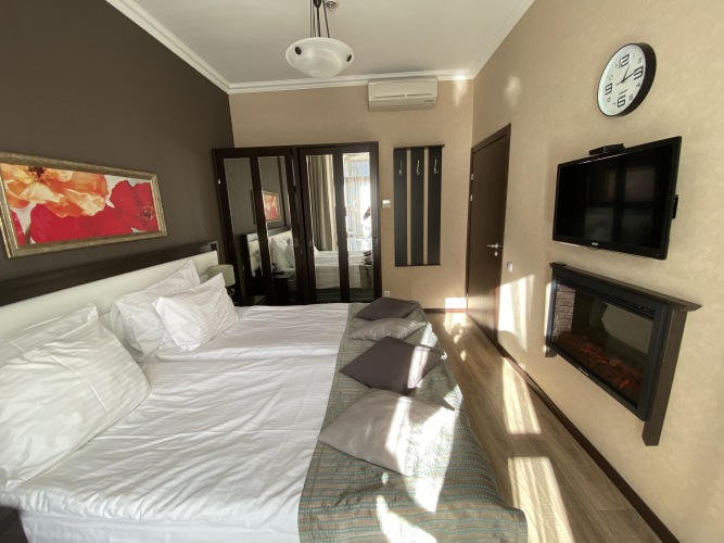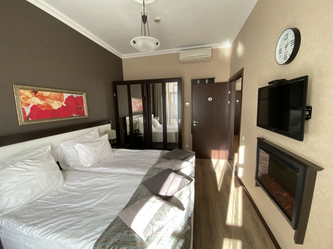 В номере вас будут ждать телевизор. Оснащение зависит от выбранной категории номера.