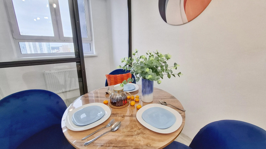 Апартаменты подходят для размещения от 1 до 8 человек. Из окон открывается вид на реку Исеть и Уральские горы. В апартаментах 2 спальни с трансформируемыми кроватями, гостиная-кухня с диваном, оборудованная кухня с техникой, посудой и приборами. Имеются телевизор, фен, чайник, микроволновка, духовка. Доступен Wi-Fi.