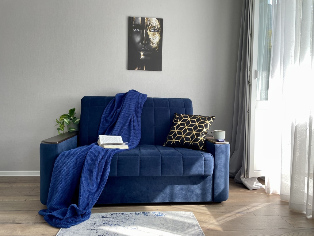 Предоставляется приветственный набор — чай, кофе. Квартира оборудована кондиционером, стиральной машиной, индукционной плитой, холодильником, Smart-TV, утюгом и феном. К услугам гостей постельное бельё, полотенца, посуда, косметика для душа. Квартира оборудована для 4-5 человек: двуспальная кровать с ортопедическим матрасом, раскладной двуспальный диван, гладильная доска, сушилка.