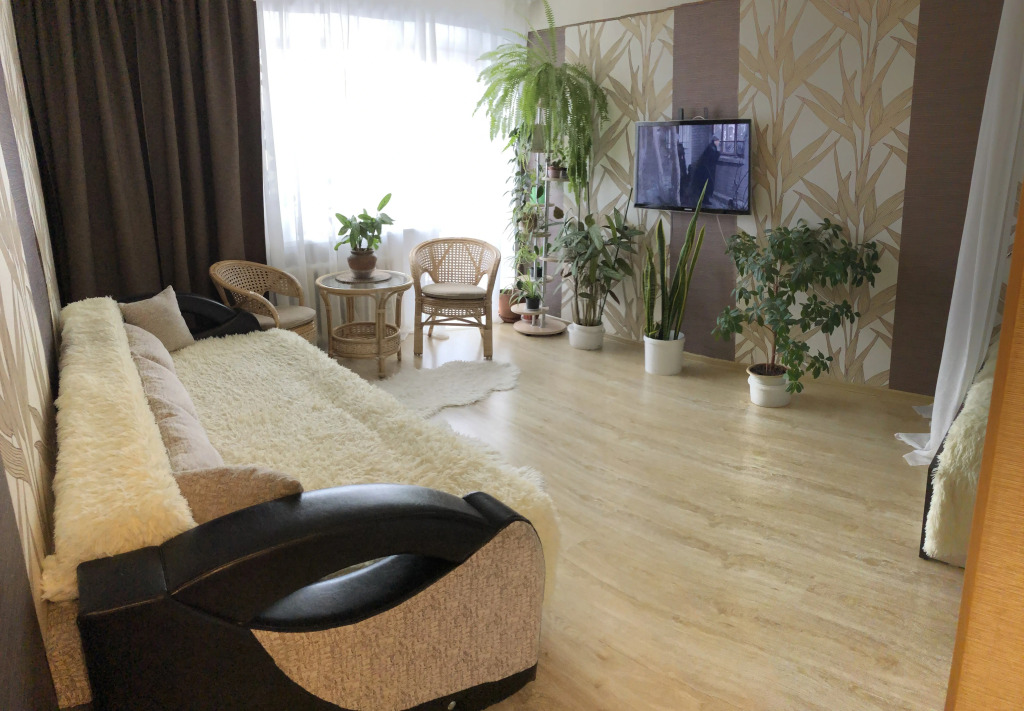 Квартира укомплектована необходимой мебелью, бытовой техникой и посудой. Предоставляется комплект постельного белья и полотенца.