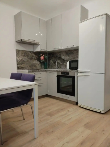 Квартира расположена на первом этаже, окна квартиры выходят на детскую площадку. Квартира полностью укомплектована: имеется двуспальная кровать с матрасом, выглаженное постельное бельё и шторы блэк-аут. На кухне имеется бытовая техника: плита, духовка, СВЧ, вытяжка, телевизор со Смарт ТВ, утюг. Дополнительно предоставляется чай, кофе, сахар, вода. В ванной имеется фен, стиральная машина, водонагреватель и белые полотенца, моющие средства, одноразовые тапочки. На территории работает бесплатный Wi-Fi.