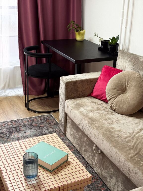 К услугам гостей кухня, гостиная с раскладным диваном и спальня. Два отдельных санузла. В квартире есть: двуспальная кровать, раскладной диван, посуда, столовые приборы, Smart-TV, посудомоечная машина, индукционная варочная панель, СВЧ, духовой шкаф, трёхступенчатый фильтр для очистки воды, электрический чайник, стиральная машина, фен, утюг, гладильная доска, сушилка для белья.