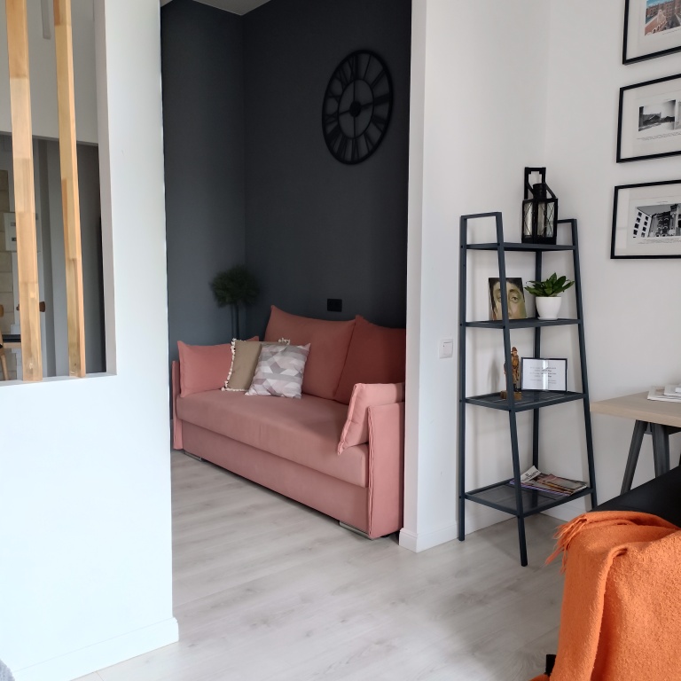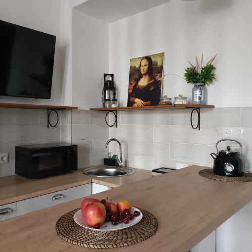 Квартира является студией, которая вмещает до 4-х гостей. В квартире есть двуспальная кровать, раскладной диван, телевизор, Wi-Fi, холодильник, СВЧ печь, варочная поверхность, стиральная машина, утюг, гладильная доска, фен, чайник, посуда, предметы гигиены, постельное бельё и полотенца.