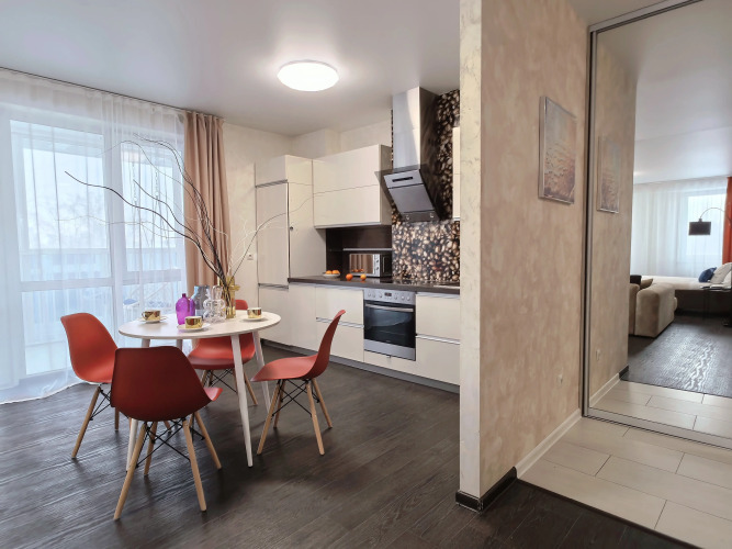 Сотрудники апартаментов поддержат беседу на английском и русском.