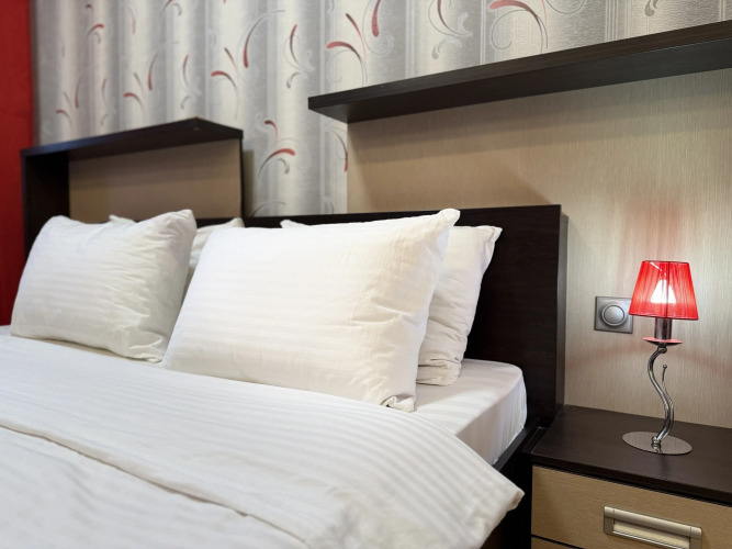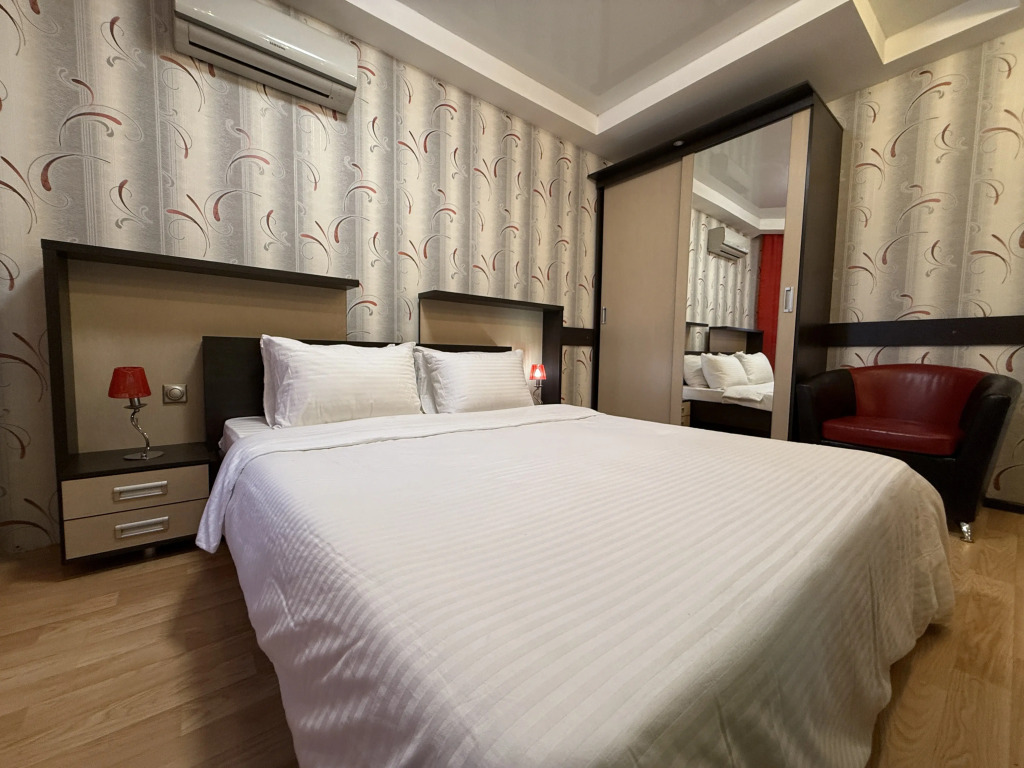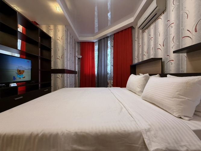 В номере вы найдёте телевизор. Оснащение зависит от выбранной категории номера.