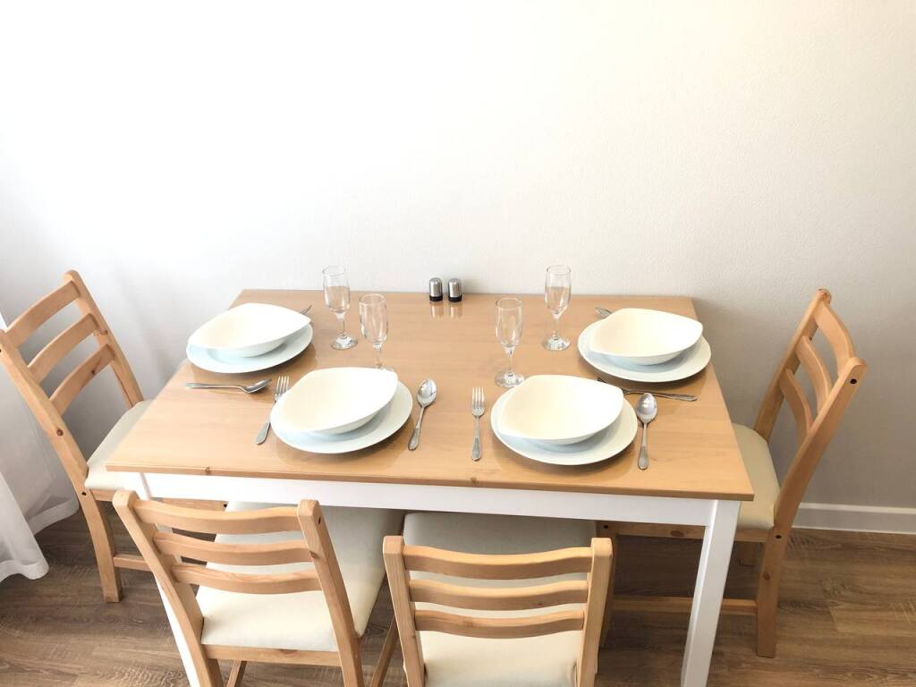 При заселении гостей ждёт приветственный набор первой необходимости: чай, кофе, сахар, сладости, пряности, питьевая вода, гель для душа, шампунь, капсула для стирки, таблетка для посудомоечной машины, туалетная бумага. На лоджии апартаментов оборудована зона отдыха. Открывается вид на взлетающие самолеты.