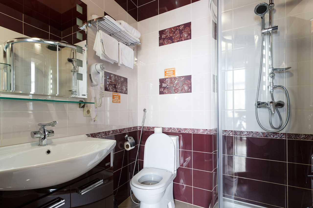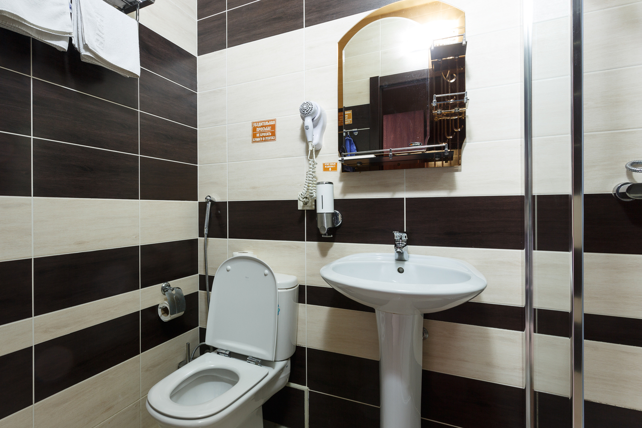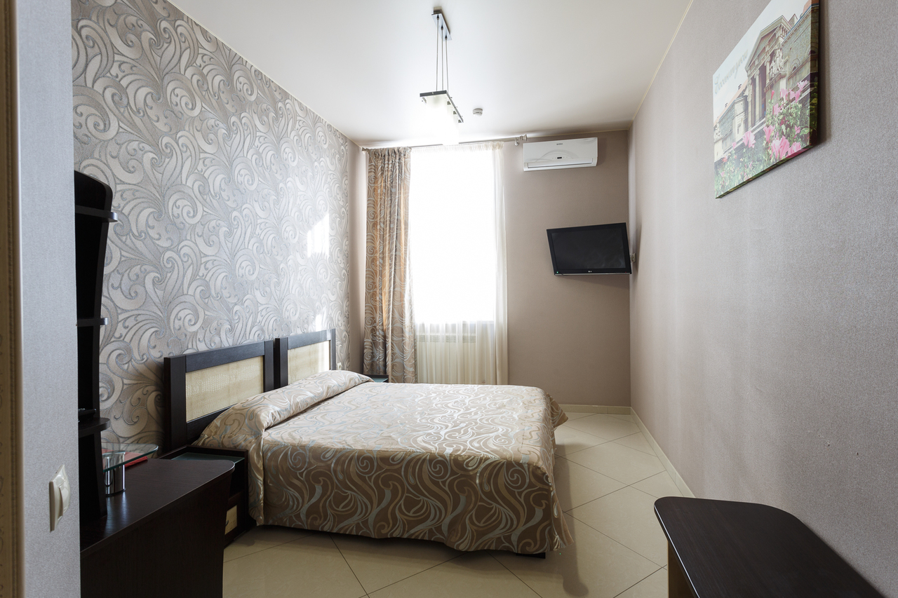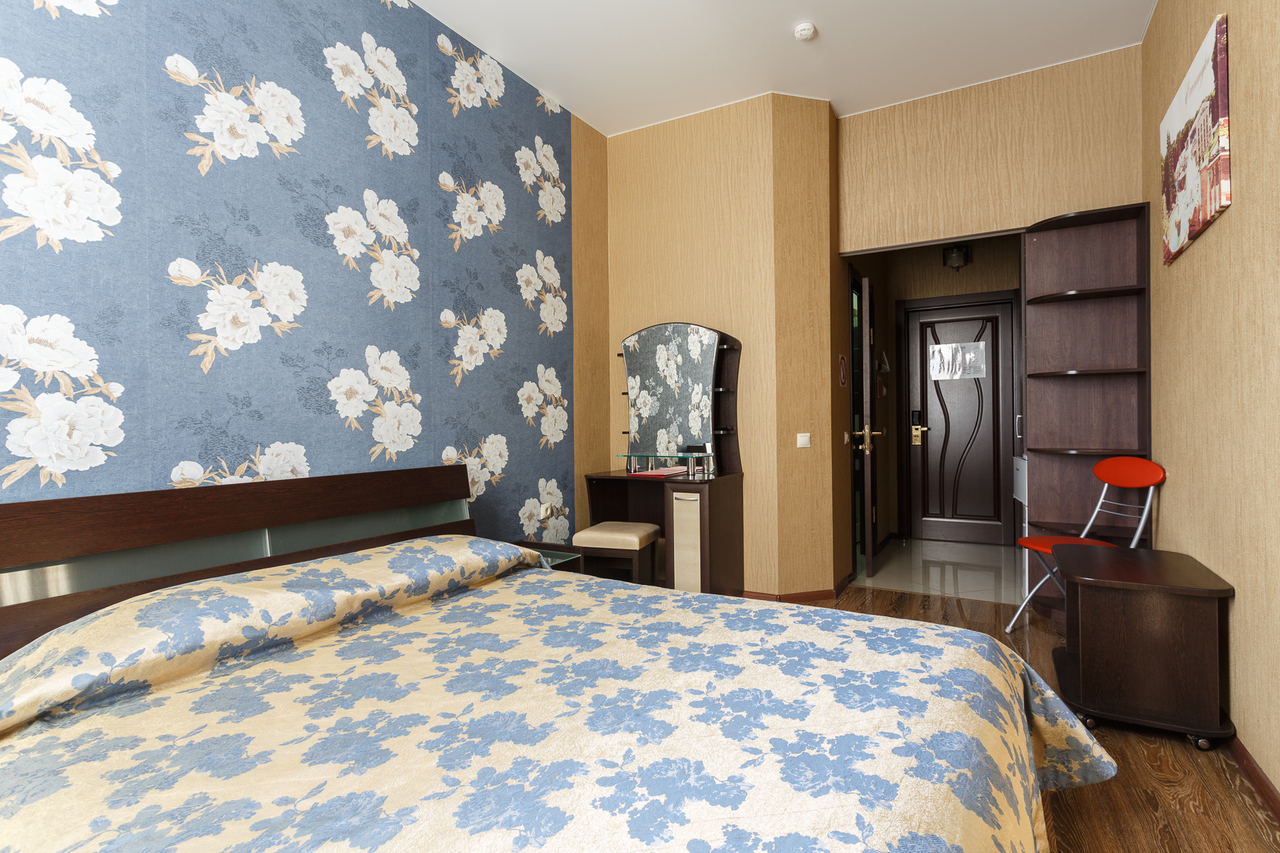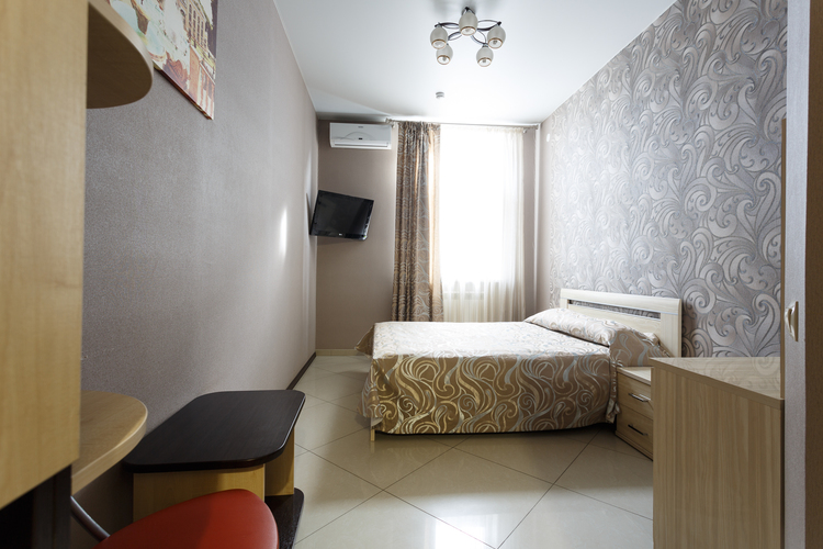 Площадь номера: 20 м2. В номере: две односпальные кровати, стол, стулья, шкаф, прикроватные тумбочки, кондиционер, телефон, тумбочка, журнальный столик, телевизор, посуда, чайник, холодильник, чай. В ванной: туалет, раковина, душ, душевая кабина, средства личной гигиены, тапочки, фен, набор полотенец.