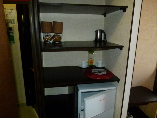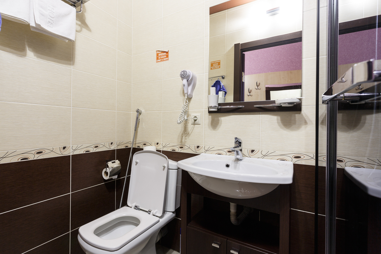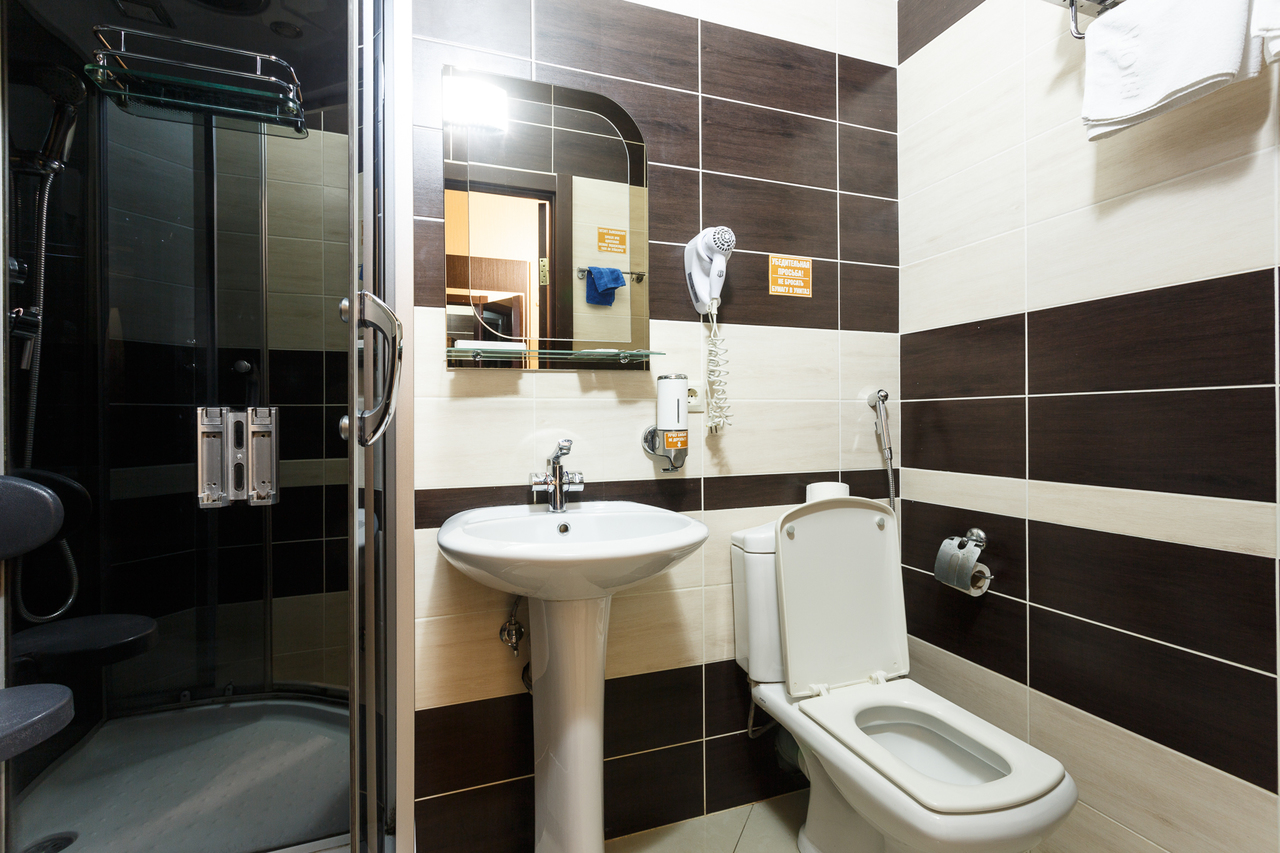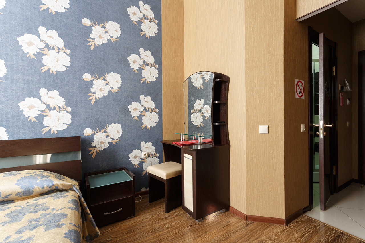 Площадь номера: 20 м2. В номере: две односпальные кровати, стол, стулья, шкаф, прикроватные тумбочки, кондиционер, телефон, тумбочка, журнальный столик, телевизор, посуда, чайник, холодильник, чай. В ванной: туалет, раковина, душ, душевая кабина, средства личной гигиены, тапочки, фен, набор полотенец.