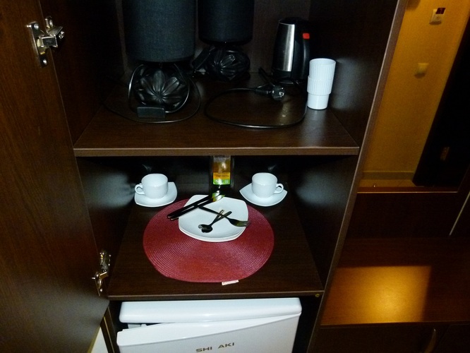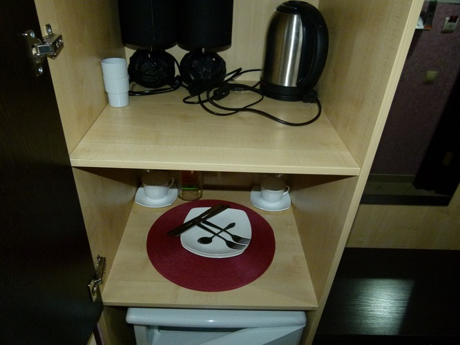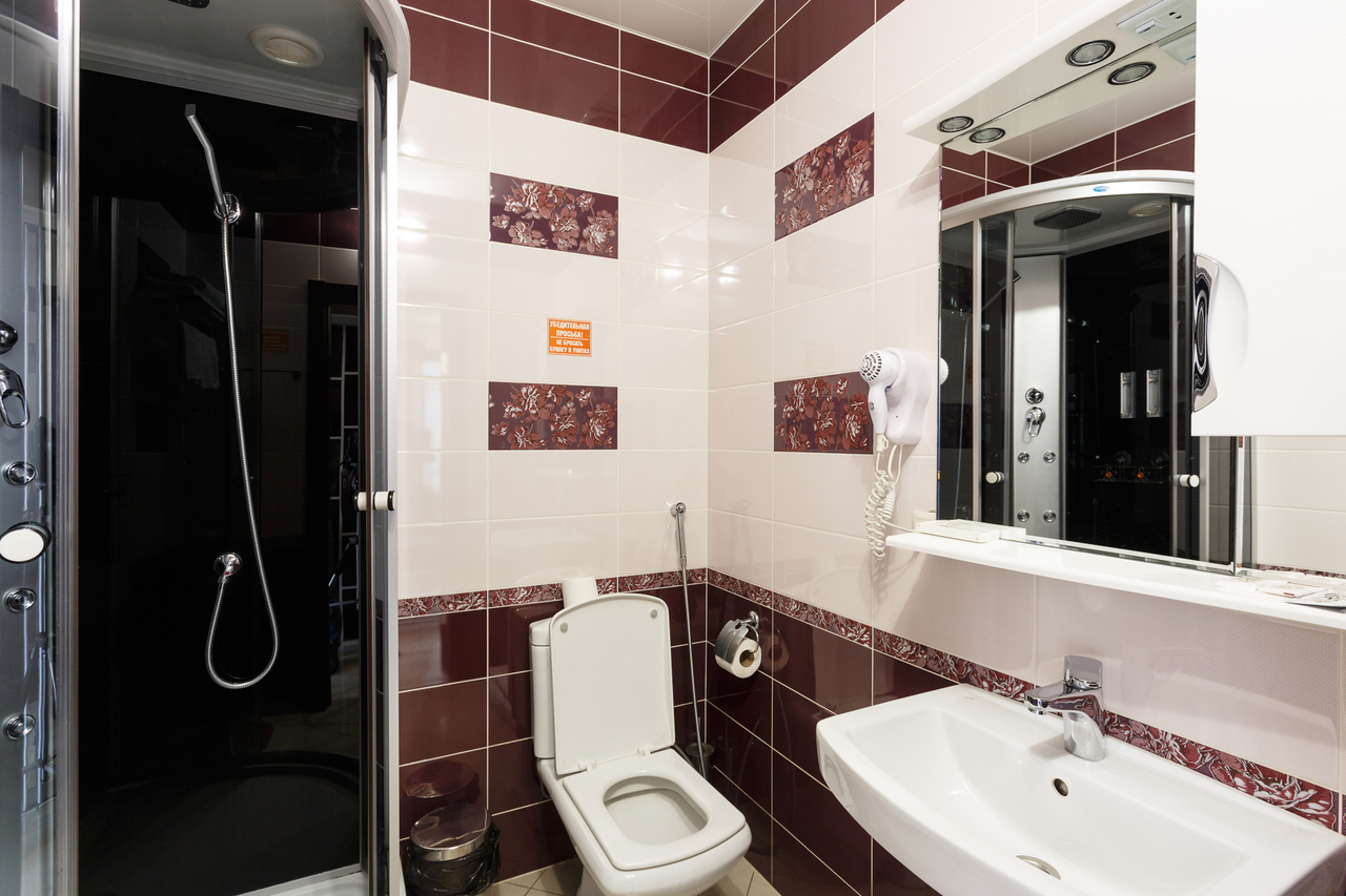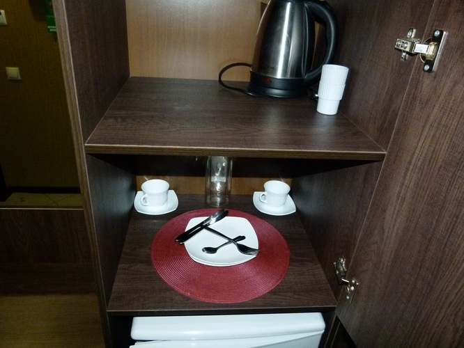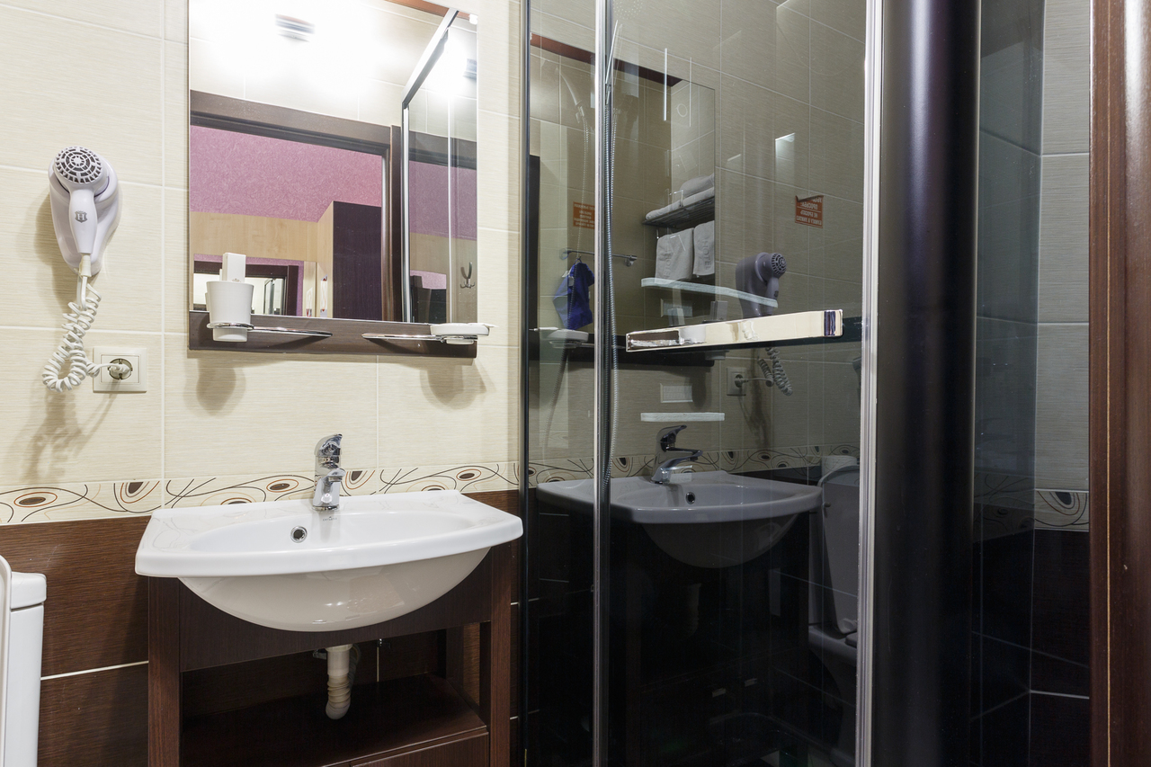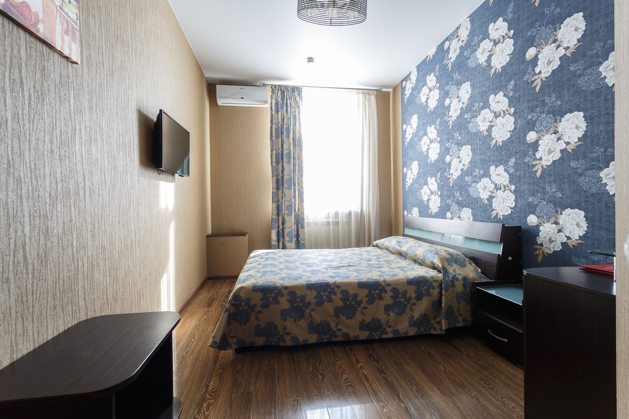 Площадь номера: 20 м2. В номере: две односпальные кровати, стол, стулья, шкаф, прикроватные тумбочки, кондиционер, телефон, тумбочка, журнальный столик, телевизор, посуда, чайник, холодильник, чай. В ванной: туалет, раковина, душ, душевая кабина, средства личной гигиены, тапочки, фен, набор полотенец.